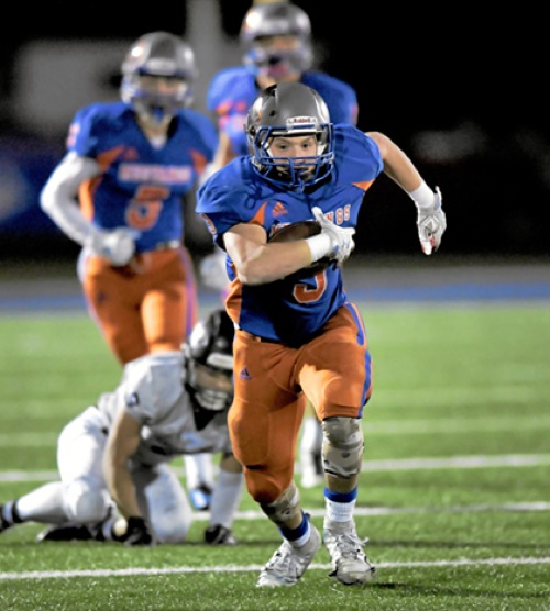 Photo by JOEL TAKARSH/for The Daily Courier PIC #0389 HV #9 had a big night carrying the ball Mustangs win and advance to semi-finals!