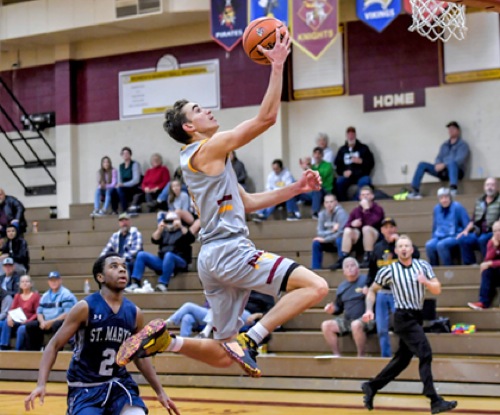 Photo by JOEL TAKARSH/for The Daily Courier PIC #0720 (L to R) ST.M #2, NV #3 Knights win it 48-39 !