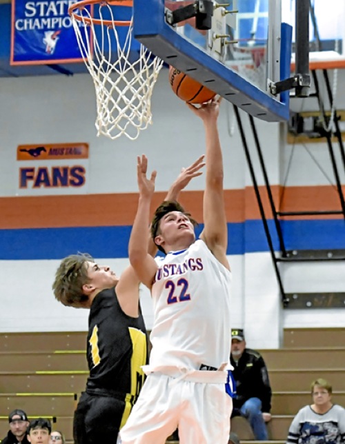 Photo by JOEL TAKARSH/for The Daily Courier PIC #0706 (L to R) SU #1, HV #22 Mustangs win it 86-49 !