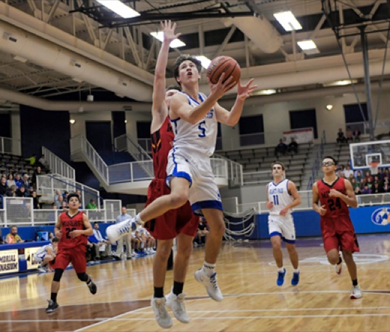 Photo by JOEL TAKARSH/for The Daily Courier PIC #0089 (L to R) YR #20, YR #4 (attempting block), GP #5, GP #11, YR #24