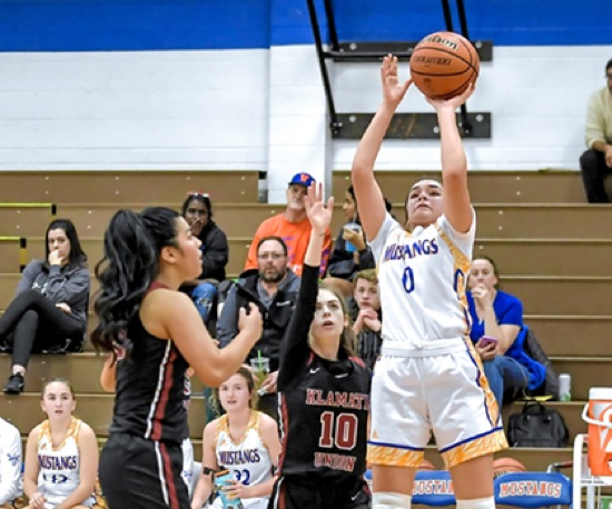 Photo by JOEL TAKARSH/for The Daily Courier PIC #0524 (L to R) KU #23, KU #10, HV #0 Mustangs win it easily 77-29 !