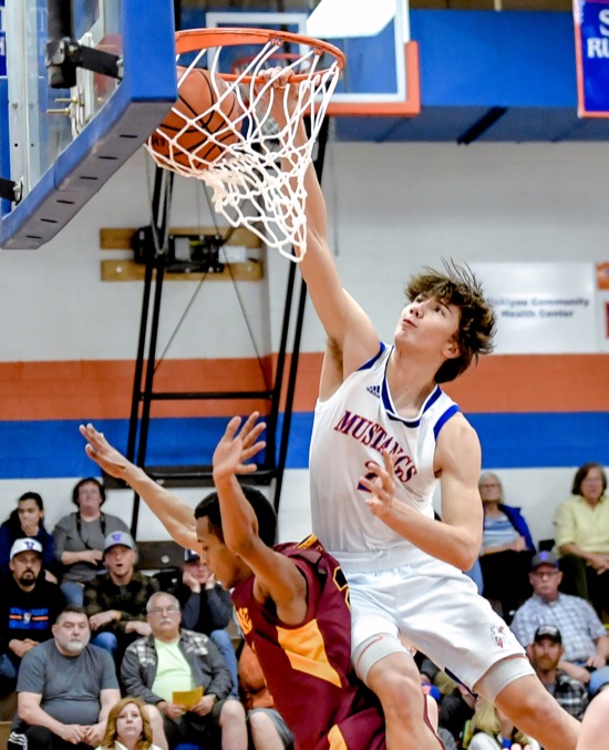 Photo by JOEL TAKARSH/for The Daily Courier PIC #DUNK#2 (L to R) JV #20, HV #2 Mustangs win it 60-53 !!