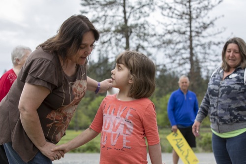 ELAYNA YUSSEN/Daily Courier Cindy Hoy (left) talks to Addie Kassab, 5, as Angie Kassab looks on at the Kassab family home in Hugo before a trip to Seattle Children's Hospital.