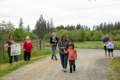 Angie Kassab walks down the driveway with her daughter Addie, 5, at their home in Hugo, where friends came to see them off before they left for Seattle Children's Hospital on April 25, 2020.