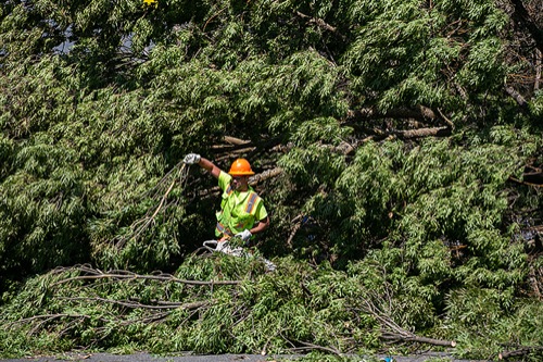 Sept. 8: Crews work to remove a tree that fell across Sixth Street, blocking all southbound traffic into town, at Northeast Hillcrest Drive. A windstorm that swept across most of Oregon west of the Cascades triggered a number of devastating wildfires, but Grants Pass was spared.