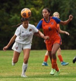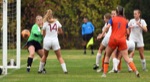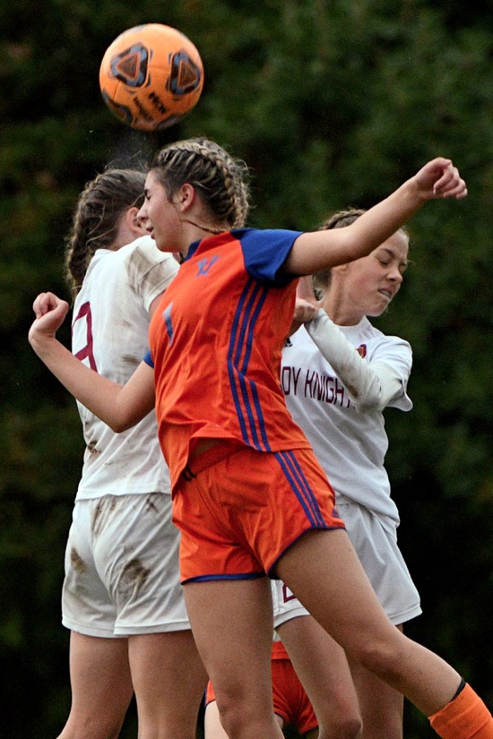 Hidden Valley's Riley Yunker battles North Valley players for a 50/50 ball.