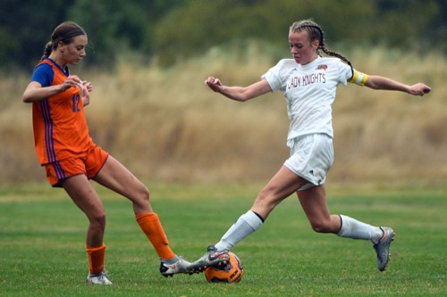 SCOTT STODDARD/Daily Courier Hidden Valley's Gabby Heverly (12) and North Valley's Olivia Smith.