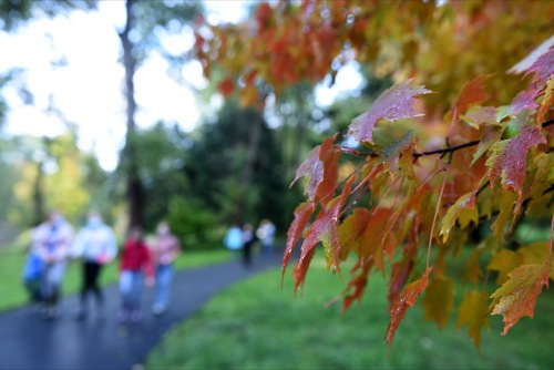 Allen Dale Elementary students walk to their next station during a field trip to the river at Reinhart Volunteer Park in Grants Pass Fri. Oct. 22, 2021.