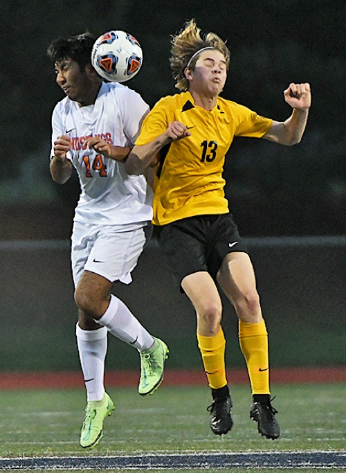 SCOTT STODDARD/Daily Courier Hidden Valley's Joaquin Martinea (14) and Philomath's Mateo Candanoza (13) battle for a free ball.