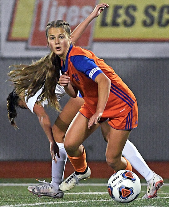 SCOTT STODDARD/Daily Courier Hidden Valley's Leah Beachy outmaneuvers Woodburn's Myranda Marquez (background) for control of the ball.