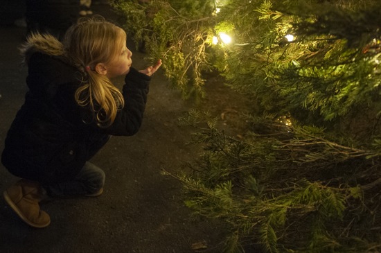 BEA AHBECK/Daily Courier Zelda Barker, 6, of Grants Pass, checks out the Christmas tree during the Christmas tree lighting event in Grants Pass Fri. Dec. 3, 2021.