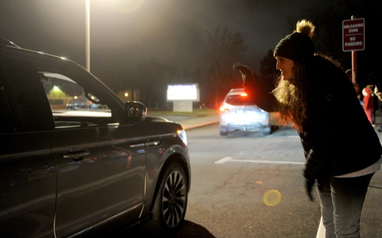 BEA AHBECK/Daily Courier Title One reading specialist Mandi DelVaglio waves to a car during the 2nd annual GP Express at Lincoln Elementary in Grants Pass Thurs. Dec. 16, 2021.