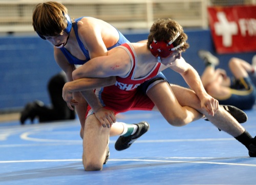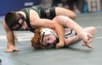 BEA AHBECK/Daily Courier Grants Pass' Owen Hull wrestles Ashland's William Wass during their 138-pound match Fri. Dec. 17, 2021. Hull won.
