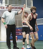 Grants Pass' Tagge Fry defeated Crater's Ty Havniear during the championship final match in the 138-pound weight class in Grants Pass Fri. Dec. 18, 2021.