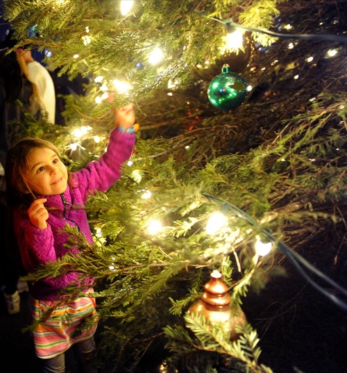 Olivia Phelan, 5, looks at the newly lit Christmas tree during the Christmas tree lighting event in Grants Pass Fri. Dec. 3, 2021.