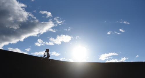 Bea Ahbeck/Daily Courier A rider at the new River City BMX bicycle racing track in Grants Pass Sat. March 5, 2022.