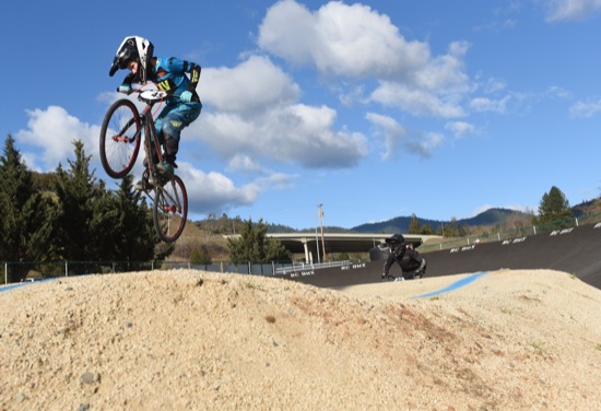 A rider at the new River City BMX bicycle racing track in Grants Pass Sat. March 5, 2022.