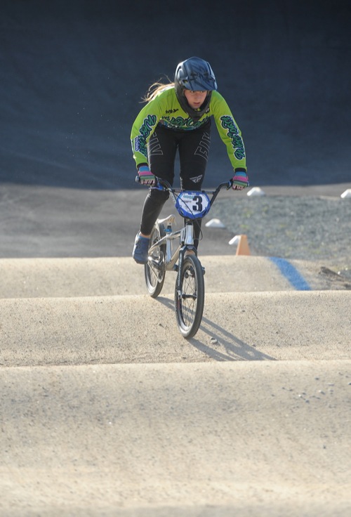 Bea Ahbeck/Daily Courier Zemirah Paulasso, 14, of Applegate, rides at the new River City BMX bicycle racing track in Grants Pass Sat. March 5, 2022.