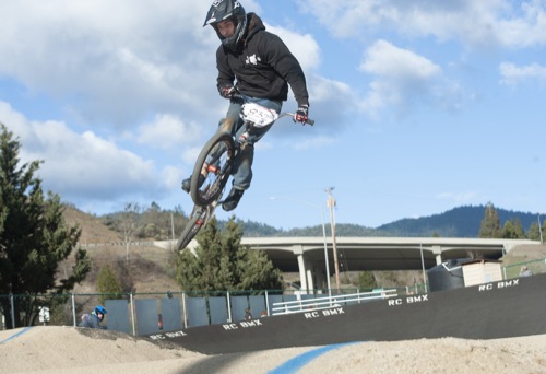 Bea Ahbeck/Daily Courier A rider at the new River City BMX bicycle racing track in Grants Pass Sat. March 5, 2022.