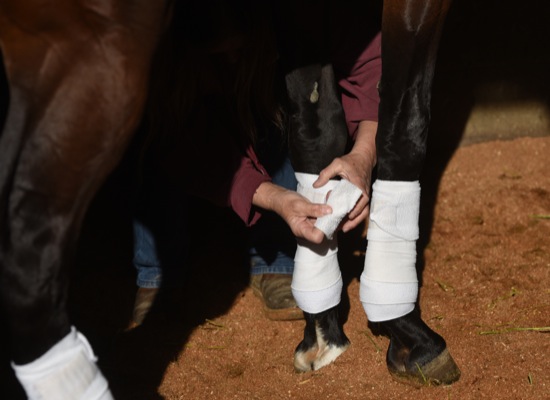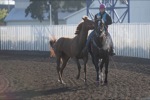 Bea Ahbeck/Daily Courier Trainer Margie Cantrell works with a horse at Grants Pass Downs in Grants Pass Thurs. April 7, 2022.