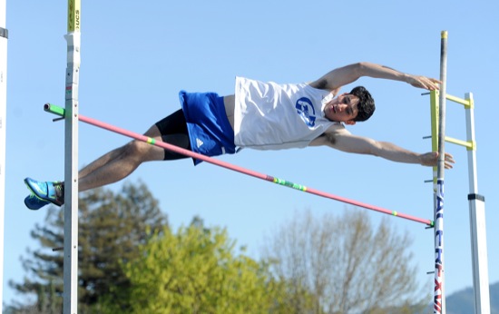 Bea Ahbeck/Daily Courier Grants Pass'Ryan Gladbach competes in the high jump during the track and field competition at Grants Pass High in Grants Pass Wed. April 6, 2022.