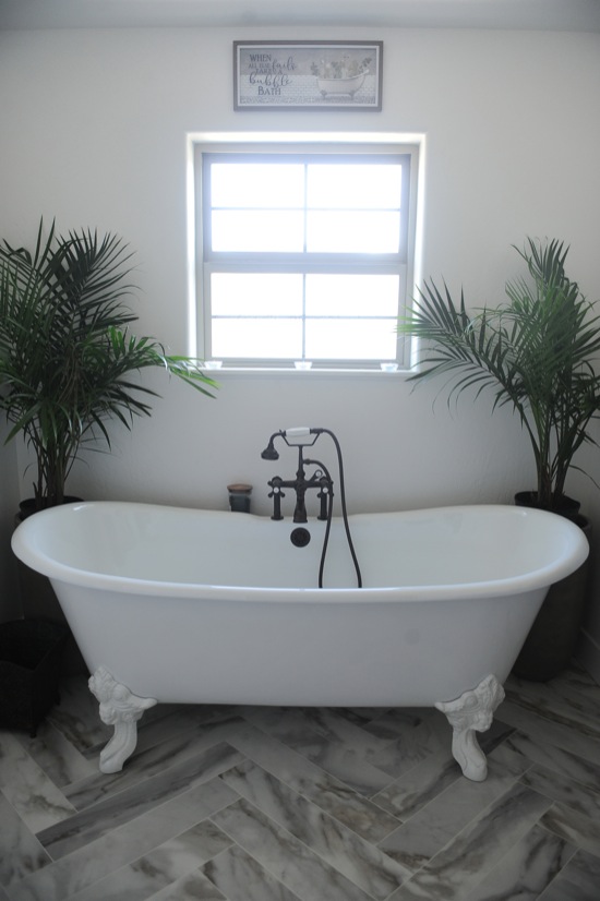Bea Ahbeck/Daily Courier A claw-foot tub in Cindy and Harry Harboldt's rebuilt home in Grants Pass Sat. April 2, 2022.