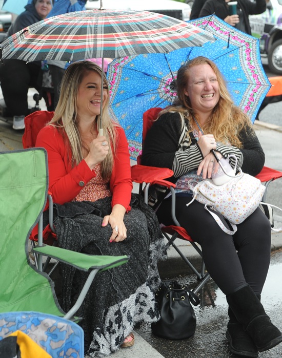 BEA AHBECK / Daily Courier Felecia Rhodes and Michelle Carlson, both of Grants Pass, smile while watching the Boatnik parade in Grants Pass Sat, May 28, 2022.