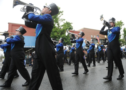 BEA AHBECK / Daily Courier Grants Pass High marching band during the Boatnik parade in Grants Pass Sat, May 28, 2022.
