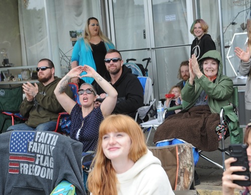 BEA AHBECK / Daily Courier A woman motions a heart during the Boatnik parade in Grants Pass Sat, May 28, 2022.