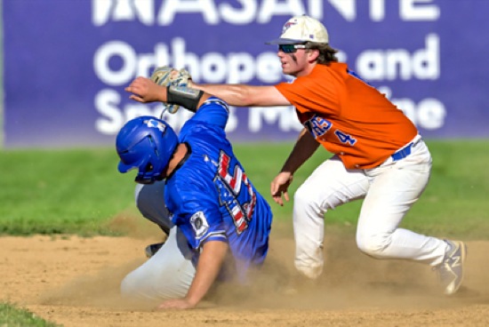 (5th inning) Machinist's #15 tries to squeak it out for a second base but HV #4 gets the tag out.