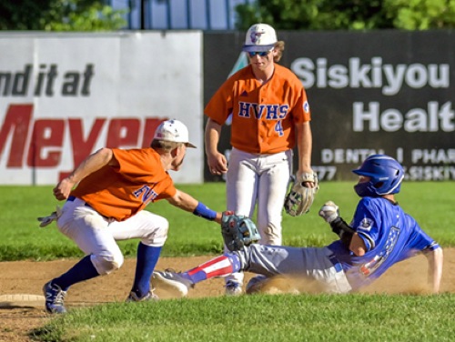 (7th inning) Machinist's #8 tries to make 2nd base but HV's #10 gets the early tag out.
