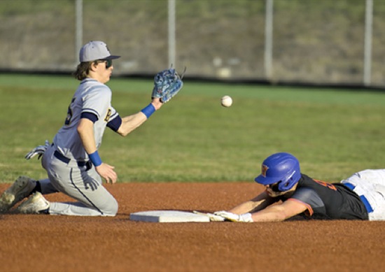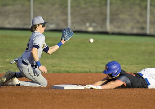 HV's # 8 gets to the bag beforen Brookings #5 can catch the ball for a stolen base at 2nd.