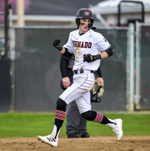(5th inning ) NM #15 comes bolting to home plate for NM's first run.