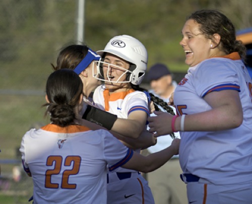 HV players celebrate clutch win (Left to right) HV #22, HV #21(blue hat), HV #22(Helmet), HV #45(far right)