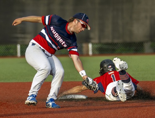 (2nd inning) MDFD #1 gets by tag attempt from GP #5 to steal 2nd base