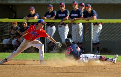 (3rd inning) Medford #25 gets by the attempted tag from KF #3 to successfully steal 3rd base