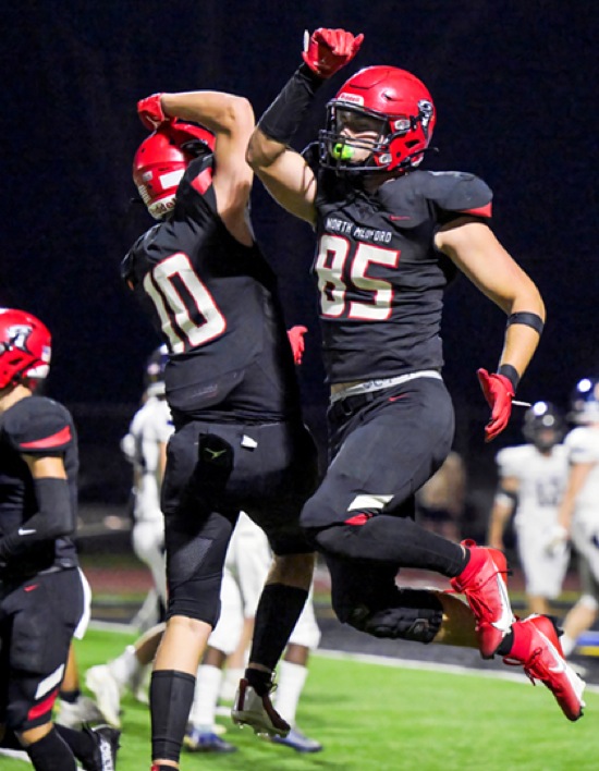 NM #10 celebrates NM #85's TD catch