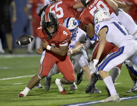 From behind, GP #44 pulls WS #4's arm to create a fumble that GP #23 recovers