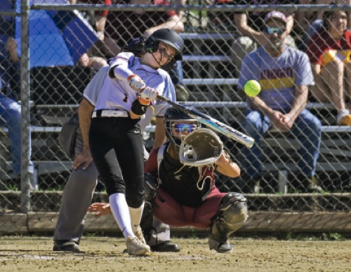 (1st game - 5th inning) CC #1 hits over the head of the NV centerfielder, drives in 2 runs, and through a series of NV throwing errors, goes on in herself to home to score a 3rd run