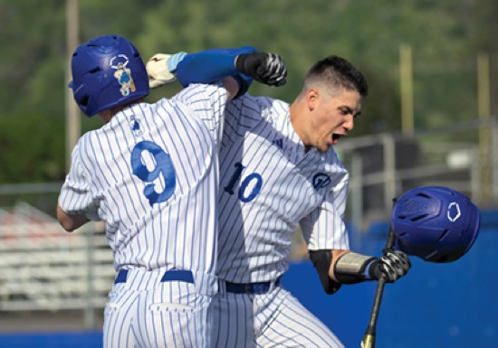 (5th inning) GP #9 does the HOOK 'EM with GP #10 (after GP #10's second solo home run)