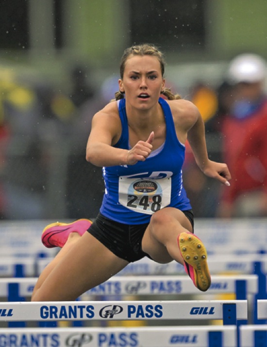 Girls 100 meter hurdles winner GP's Lauren Robinson