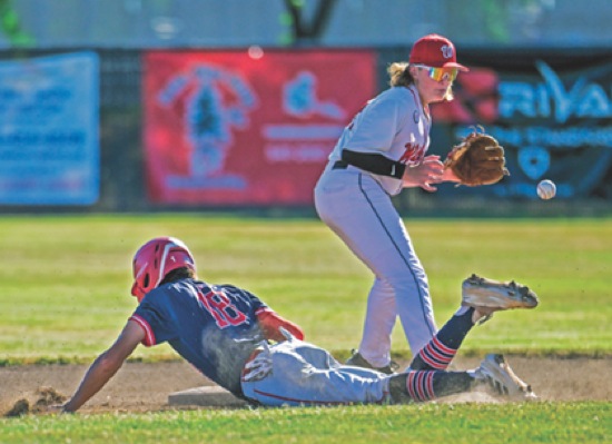 Medford #18 easily beats the throw to Salem 2nd baseman for a stolen base