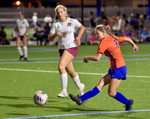 HV #2 drills the ball for her 3rd goal. HV leads 3-0