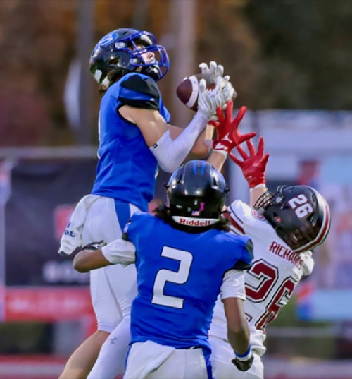 SMED #7 leaps to intercept this pass intended for Sandy receiver #26