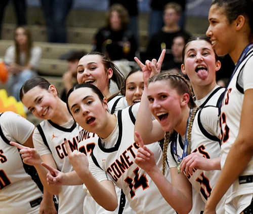 SCOTT STODDARD / Daily Courier Crater players ham it up for the camera while awaiting the postgame awards ceremony to begin at center court in McMinnville.