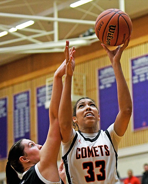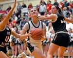 SCOTT STODDARD / Daily Courier Crater's Lydia Traore goes up strong over South Albany's Taelyn Bentley.