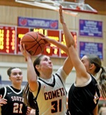 SCOTT STODDARD / Daily Courier Crater guard Taylor Young powers her way to the basket as South Albany's Maddie Angel tries to defend.