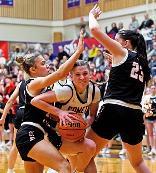 SCOTT STODDARD / Daily Courier Crater guard Sage Winslow finds an opening and drives past the defense of South Albany's Phara Dickson (left) and Taelyn Bentley in overtime.