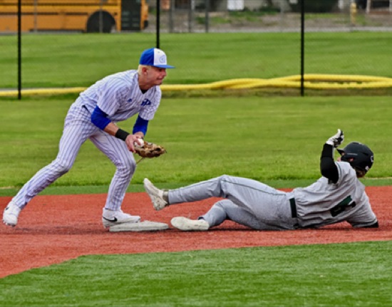 (2nd inning) A hopper is hit directly to GP #2 who simply puts his foot on 2nd base to complete the force out but then throws the ball to first to complete a double play