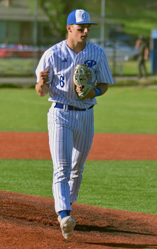 (7th inning) GP relief pitcher #6 gives a fist pump after the final out and win for GP